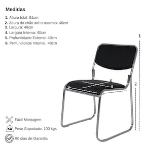 Cadeira De Escritório Recepção Auditório Interlocutor Base Fixa Dakkar Dubai Preto