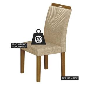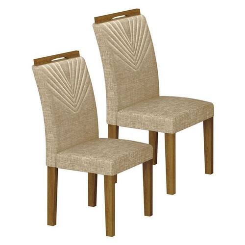Cadeira para Mesa de Jantar Stela MDF Kit 2 Peças Freijó Linho Palha Leifer Móveis