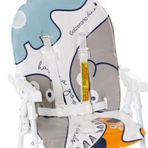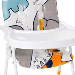 Características: Marca: Galzerano Modelo: Dino | Real Tipo: Cadeira para refeição Peso suportado: Até 23kg Material: Assento e encosto acolchoado de plástico laminado Apoio para copos: Sim Ajuste de altura: Sim Cinto de segurança: 5 pontos Trava de segurança: Sim Apoio para os pés: Sim Inmetro: 002366/2022 Origem: Nacional Código de barras: Dino: 7908200102841 | Real: 7908200102834