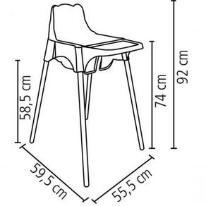 Empilhável até: 10 peçasFaixa Etária Recomendável: 6 mesesFabricado em Polipropileno com pernas em alumínio anonizadoAcompanha almofada decorada no encosto, e cinto de seguranç Máximo Recomendável: 15kgLivre de Material Tóxico Ean: 7898507483913