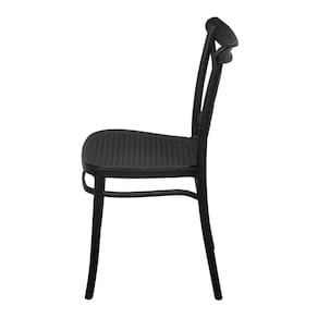 Cadeira em polipropileno injetado com injeção simulando palha sextavada. Tratamento UV para área externa e empilhavel.