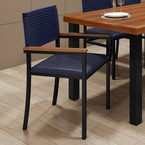 A cadeira com assento estofado e encosto trançado em corda náutica combina elegância e conforto. Seu assento acolhedor é ideal para longos períodos de uso, enquanto o encosto trançado garante durabilidade. Os braços com detalhes em madeira adicionam um charme rústico e natural, proporcionando um apoio ergonômico. Ideal para salas de jantar, varandas ou áreas gourmet, esta peça integra-se facilmente a diferentes estilos de decoração. Ambiente Principal: Sala de Jantar codigo_ean: 7909903974322 Complexidade da Montagem: Baixa: pode ser montado por uma pessoa sozinha Cor: Preto/Azul Cor do Produto: Preto/Azul Escala de Brilho: Semi-Fosco Marca: PAONANDA DECOR Material Principal: Aço Necessita Montagem: Sim Origem do Produto: Nacional Peso: 8 kg Marca: PAONANDA DECOR