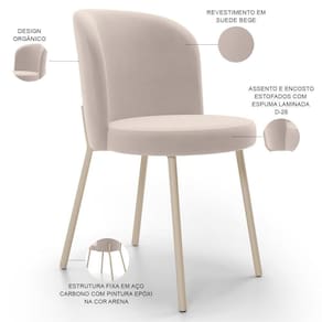 Altura da cadeira: 80 cm | Color: Bege | ColorFamily: Bege | ColorSimple: Bege | ColorSupplier: Bege | Cor: Bege | Cor da estrutura da cadeira: Arena | Cor do assento: Bege | Cor do estofamento: Bege | Desenho do tecido: Liso | É cadeira de balanço: Não | É dobrável: Não | É empilhável: Não | Espessura do assento: na | Fabricante: Lyam Decor | Largura da cadeira: 44 cm | Largura do assento: 42 cm | Material: Estrutura em Aço carbono, Revestimento em Suede e espuma | Material do estofamento: Suede e espuma | MaterialFamily: Aço carbono, suede e espuma | Model: Gavi | OriginCountry: Nacional | OriginState: PR | Peso máximo suportado: 120 kg | ProductContents: 01 Cadeira | ProductHeight: 81 cm | ProductInstructions: Produto para uso em ambiente interno, nao devendo ficar exposto ao sol, calor e umidade excessivos. | ProductLength: 54 cm | ProductWarranty: 90 dias após o recebimento do produto | ProductWeight: 5 kg | ProductWidth: 45 cm | Profundidade da cadeira: 53 cm | SizeDescription: Altura: 81 cm x Largura: 45 cm x Profundidade: 54 cm | SupplierSimpleName: Cadeira Para Sala de Jantar Cozinha Estofada Gavi Arena L02 Suede Bege - Lyam Decor