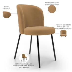 Altura da cadeira: 80 cm | Altura do assento a partir do solo: 46 cm | Color: Amarelo | ColorFamily: Amarelo | ColorSimple: Amarelo | ColorSupplier: Mostarda | Cor: Mostarda | Cor da estrutura da cadeira: Preto | Cor do assento: Mostarda | Cor do estofamento: Mostarda | Desenho do tecido: Bouclê | É cadeira de balanço: Não | É dobrável: Não | É empilhável: Não | Espessura do assento: na | Fabricante: Lyam Decor | Firmeza: Firme | Largura da cadeira: 44 cm | Largura do assento: 42 cm | Material: Tecido, Aço | Material do estofamento: Bouclê | MaterialFamily: Tecido, Aço | Model: Gavi | OriginCountry: | OriginState: PR | Peso máximo suportado: 120 kg | ProductContents: 01 Cadeira | ProductHeight: 80 cm | ProductInstructions: Produto para uso em ambiente interno, nao devendo ficar exposto ao sol, calor e umidade excessivos. | ProductLength: 53 cm | ProductWarranty: 90 dias após o do produto | ProductWeight: 5 kg | ProductWidth: 44 cm | Profundidade da cadeira: 53 cm | Profundidade do assento: 42 cm | Requer montagem: Não | SizeDescription: Altura: 80 cm x Largura: 44 cm x Profundidade: 53 cm | SupplierSimpleName: Cadeira Para Sala de Jantar Cozinha Estofada Gavi L02 Bouclê Mostarda - Lyam Decor | Tempo de montagem: na