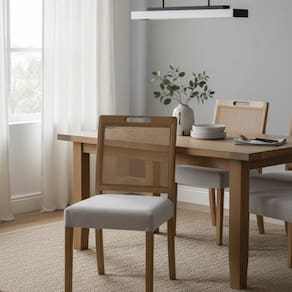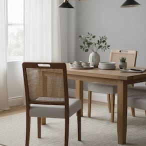 Cadeira Celine com madeira de marupá, detalhe no encosto em rattan e assento estofado. Esta cadeira ficará linda na sua sala de jantar para receber seus convidados, com design moderno e sofisticado. Vai deixar seu ambiente maravilhoso!!!