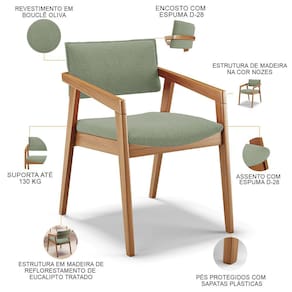 A Cadeira Para Sala de Jantar Estar Living Giorgia B04 Bouclê Oliva, da Lyam Decor, é perfeita para adicionar um toque moderno à sala de jantar. Com sua estrutura em madeira maciça envernizada, ela traz durabilidade e estilo para o ambiente. O assento e o encosto estofados e revestidos com tecidos alto padrão proporcionam conforto durante as refeições, além de serem fáceis de limpar.