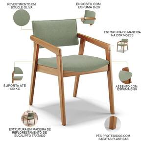 OriginState: Paraná | ProductHeight: 80 cm | Cor: Oliva | Model: Giorgia | Tempo de montagem: na | Firmeza: Firme | ColorFamily: Oliva | ColorSimple: Oliva | ColorSupplier: Oliva | OriginCountry: | Cor do estofamento: Oliva | ProductContents: 01 Cadeira | ProductLength: 65 cm | É cadeira de balanço: Não | SupplierSimpleName: Cadeira Para Sala de Jantar Estar Living Giorgia B04 Bouclê Oliva - Lyam Decor | Fabricante: Lyam Decor | Color: Oliva | ProductWarranty: 90 dias após o do produto | Material: Madeira, Bouclê | SizeDescription: Altura: 80 cm x Largura: 56 cm x Profundidade: 65 cm | ProductInstructions: Produto para uso em ambiente interno, nao devendo ficar exposto ao sol, calor e umidade excessivos. | MaterialFamily: Madeira | ProductWeight: 8 kg | Cor da estrutura da cadeira: Nozes | Peso máximo suportado: 130 Kg | Profundidade do assento: 55 cm | Largura do assento: 50 cm | Desenho do tecido: Liso | Espessura do assento: na | Profundidade da cadeira: 65 cm | Largura da cadeira: 56 cm | ProductWidth: 56 cm | É dobrável: Não | Cor do assento: Oliva | Altura do assento a partir do solo: 45 cm | Requer montagem: Não | É empilhável: Não | Material do estofamento: Bouclê | Altura da cadeira: 80 cm