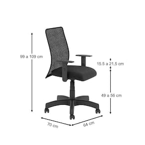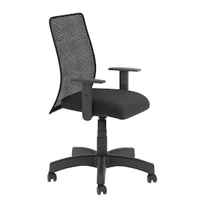 Assento em tecido Space e encostos em tela super resistente preta. Base e braço pretos.