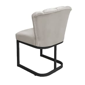 Cadeira Pétala Base de Ferro Preta Veludo Bege - Vallisa Decor - Preto