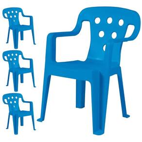 Cadeira Plástica Tipo Poltrona Kids Azul Com 4 Unidades MOR