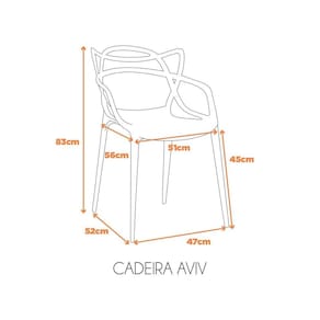 Imponente e detalhista, a cadeira Aviv é ideal para ser usada em sua residência ou ambientes corporativos. Por ser uma cadeira monobloco, ela é empilhável, resistente e de fácil limpeza e manutenção. Sua variedade de cores permite que seja combinada com vários ambientes. Acabamento da Estrutura: Pintura Altura do assento até o chão: 45 cm Ambiente Principal: Cozinha Cor: Marrom Capuccino Cor do Produto: Marrom Capuccino Escala de Brilho: Fosco Estrutura do Assento: Polipropileno Estrutura do Encosto: Polipropileno Itens Inclusos: 1 Cadeira Linha ou Coleção: Aviv Manual de Montagem e Instalação: https://cdn2.madeiramadeira.com.br/atributo/fratini/1127294-cadeira-aviv.jpg Necessita Montagem: Não Origem do Produto: Importado Peso: 4,5 kg Possui Rodízio: Não Recomendações de Uso, Manutenção e Limpeza: Utilize pano levemente umedecido. Suporta Até (kg): 184 kg Tipo de Assento: Fixo Tipo de Encosto: Fixo