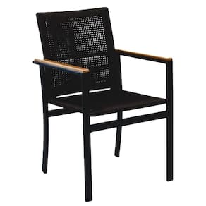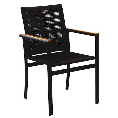 Cadeira Poltrona Amélia Premium Corda Náutica Baços Madeira Para Jardim Jantar Piscina Preto