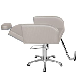 Com um design clean, braços estofados com detalhe arredondado na ponta, espuma de alta densidade e assento amplo confortável para seu cliente, cabeçote ajustável e removível, apoio de pés em aço e base hidráulica com trava para o giro! O encosto ainda conta com um sistema de reclinio com ângulo de 170°, ideal para procedimentos faciais!