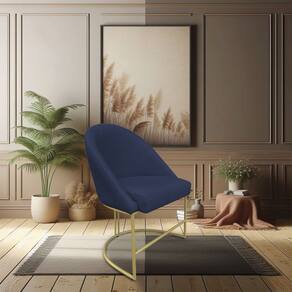 Cadeira Poltrona de Jantar Bela Veludo Azul Marinho Base Metálica Industrial Dourado - Pallazio