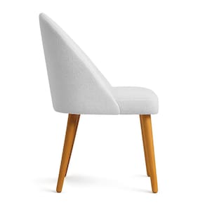 Cadeira Poltrona de Jantar Estofada Luna Boucle Cinza Pés Palito Castanho - Pallazio