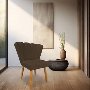 A Cadeira Poltrona Flor em veludo é uma peça que une estilo e conforto de maneira única. Seu revestimento em veludo proporciona um toque suave e elegante, enquanto os pés palito castanho conferem um charme adicional ao design da poltrona.
