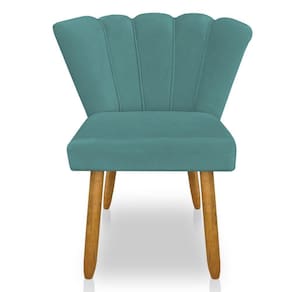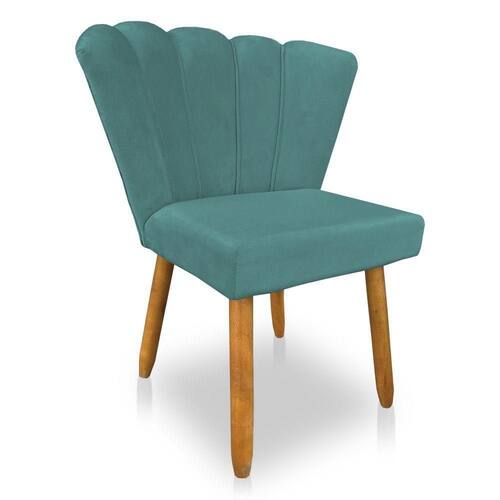 Cadeira Poltrona Flor Veludo Pés Palito Castanho - Pallazio Cor Azul Turuqesa