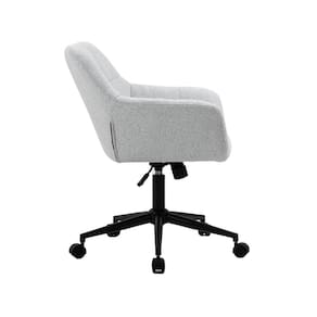 Encosto e Assento com estrutura interna em madeira, estofado e revestido em tecido cinza claro;