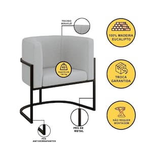 Tipo De Produto: Poltrona | Cor Principal: Não aplica | É Reclinável: Não | Desenho Do Tecido: Bouclê | Acessórios Incluídos: Não | É Sofá-Cama: Não | Estilo: Clássico | Cor Dos Pés: Preto | Comnto Do Colchão: Não aplica | Linha: Premium | Formato Do Sofá: Não aplica | Largura Da Cama: Não aplica | Material do estofamento: Espuma | Unidades Por Kit: 1 | Densidade Da Espuma Do Assento: D-23 | Mecanismo De Abertura Do Produto: Não aplica | Profundidade Da Cama: Não aplica | Altura Da Cama: Não aplica | Largura Do Colchão: Não aplica | Material De Enchimento Do Encosto: Espuma | Requer Montagem: Não | Altura: 70 CM | Marca: B BALAQUI DECOR | Tipo de Garantia: Garantia do Fabricante | Coleção de Antiguidade: Não | Móvel Dobrável: Não | Tamanho do Pacote: Não aplica | Dimensão (A x L x C): 70 x 67 x 60 | Regulamentações aplicáveis a produtos perigosos (supplierDeclaredDGHZRegulation): Não se aplica | Estofado: Bouclê | Número de Assentos: 1 | Duração da Garantia: 3 meses | Largura: 67 CM | País de Origem: Brasil | Profundidade: 60 CM | Peso do Item (itemWeight): 13 kg | Material: Madeira | Fabricante: BALAQUI DECOR | Precisa de baterias ou pilhas (areBatteriesRequired): Não | Peso suportado: 140 kg | Montagem: Montagem Completa | Quantidade de Lugares: 1 | Revestimento: Bouclê | Material dos pés: Metal | Materiais da estrutura: Madeira | É modular: Não | É Em forma de U: Não | É de canto: Não | É com chaise: Não | Modelo: Poltrona Lua | Quantidade de caixas de embalagem: 1 Cor: Cinza
