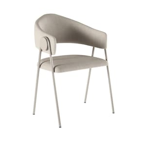A Cadeira Poltrona Estofada é a solução perfeita para quem busca unir conforto e estilo. Com uma estrutura de aço em acabamento cor Champagnhe, ela garante conforto, durabilidade e um visual moderno. O assento e o encosto são totalmente revestidos em um elegante tecido bouclê bege, ideal para compor decorações sofisticadas. Conta com design ergonômico nos braços, podendo ser usada tanto na sala de estar, como cadeira de apoio no quarto ou até mesmo em um escritório em casa.