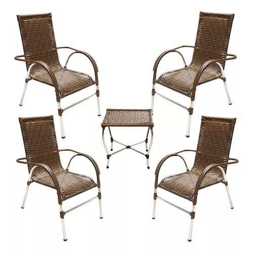 Cadeira Poltrona Vênus área Varanda Junco Argila ATENCAO: consulte o custo de envio. ITENS INCLS: 04 Cadeiras Venus em aluminio 01 Mesa de centro Venus em aluminio