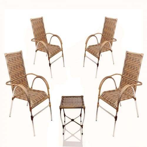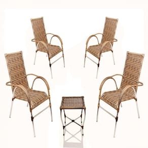 Cadeira Poltrona Vênus área Varanda Junco Capuccino ATENCAO: consulte o custo de envio. ITENS INCLS: 04 Cadeiras Venus em aluminio 01 Mesa de centro Venus em aluminio