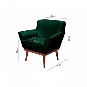 A poltrona Yasmin é uma peça com acabamento em Veludo e pés em madeira, por isso, ideal para quem busca levar mais sofisticação aos ambientes, compondo perfeitamente com diversos estilos de decoração.