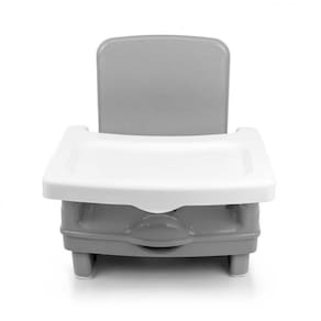 CARACTERÍSTICAS Tampa com porta-objetos para babador ou talheres do bebê Bandeja removível para lavar ou desmontar Entrepernas elevado evita escorregamentos Cinto de segurança de 3 pontos para o bebê com protetor macio Tiras de fixação ajustáveis para as cadeiras de adulto, com retrator para Armazenamento 2 posições de altura ajustável através dos pés retráteis Material resistente e de fácil limpeza Compacta: transforma-se em maleta com alça para carregar