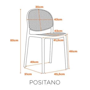 A Cadeira Positano - Cinza tem uma alta elegância em seu design. Seu encosto e assento possuem a textura Rattan. Porém, por sem toda em polipropileno, ela garante grande resistência. Seu estilo moderno e elegante, faz com que ela se adeque a ambientes internos e externos.