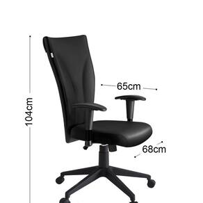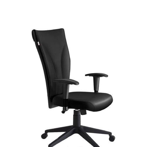 Cadeira giratória Be One de espaldar alto com encosto estruturado em madeira laminada e estofado com espuma laminada com densidade D28. Assento estruturado em madeira laminada e estofado com espuma injetada com densidade D45. Revestimento em sintético preto.