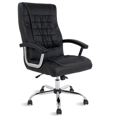 Além disso, essa cadeira presidente possui base giratória em metal cromado - um material de qualidade que proporciona maior durabilidade e resistência à peça, braços fixos e regulagem de altura.