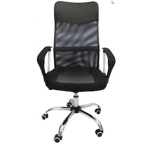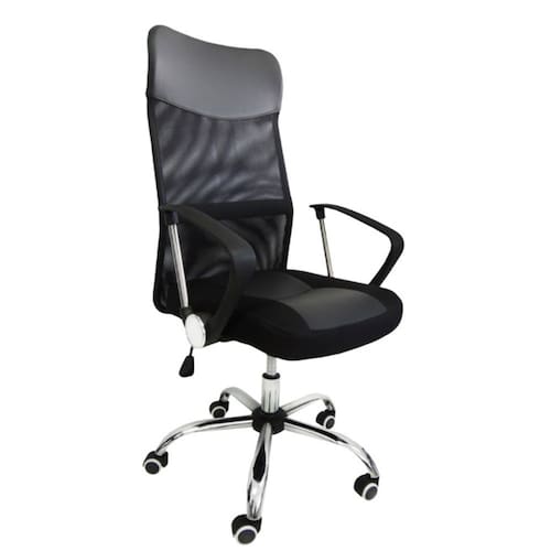 Assento com estrutura em madeira com estofamento revestida em tela mesh/couro PU. Base giratória em aço cromado. Rodízios com injetado material anti-riscos.