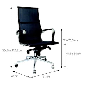 A Cadeira Presidente Eames possue mecanismo relax e travamento, cotam com rodízio anti-risco e regulagem de altura.