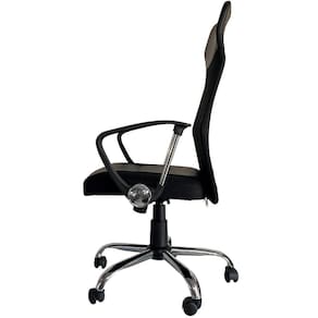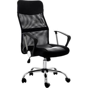 Cadeira básica e confortável, ideal para passar algumas horas de trabalho contribuindo para uma rotina mais produtiva pensando sempre na postura. O assento em tecido tem espuma laminada, encosto com estrutura em aço na cor preta e revestimento em tecido tela (mesh). Possui um apoio para a lombra e revestimento no topo da cadeira em couro. O braço fixo, não tem regulagem de altura, aranha cromada, pistão de regulagem de altura. A função relax com inclinação de até 15 graus possui ativação na mesma alavanca da regulagem de altura.