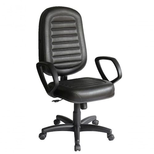 Cadeira Presidente para Escritório e Home Office sendo encosto revestido com gomos costurados em couríssimo preto Cor: Preto - Tonalidade da Cor: Preto- Marca: Design Office Móveis