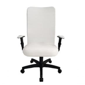 Poltrona Presidente Gomada com base relax ,com braços reguláveis e apoio de braços revestido na cor branca.