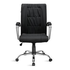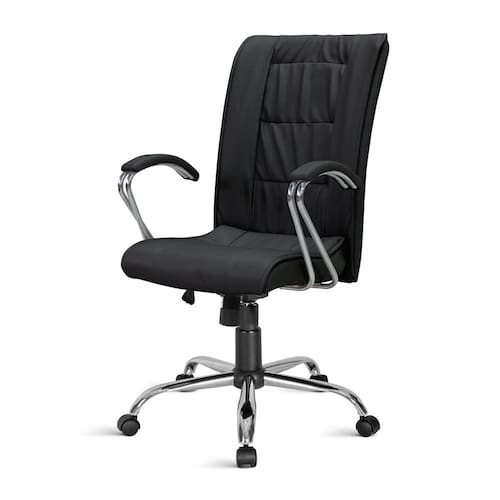 * Braços fixos cromados com apoio revestido em courvim 100% pvc.