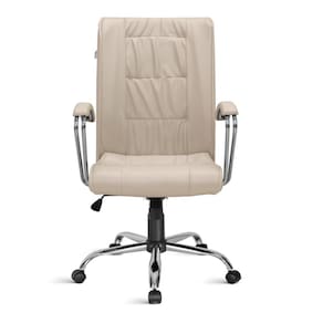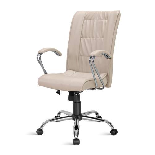 * Braços fixos cromados com apoio revestido em courvim 100% pvc.