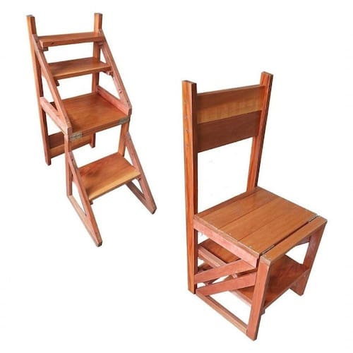 CADEIRA QUE VIRA ESCADA COM 4 DEGRAUS EM MADEIRA DE LEI ANGELIM PEDRA SEM VERNIZ