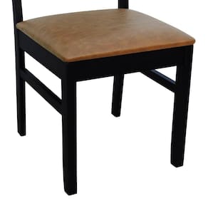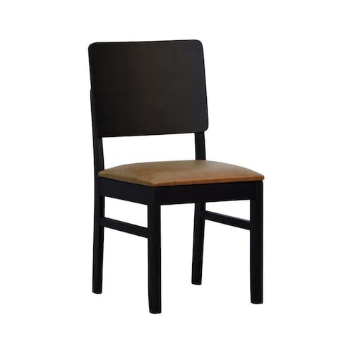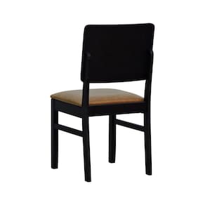 Cadeira Quéops Madeira Maciça Encosto Anatômico Assento Estofado - Preto Corano Marrom Mescla