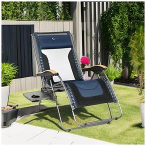 Espreguiçadeira de design multifuncional encosto de malha respirável conectado a assentos acolchoados, travesseiro acolchoado ajustável para apoio de cabeça e apoio lombar, mesa lateral para bebidas e zenamento de telefone.