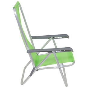 Especificações Material da Estrutura: Alumínio Material do Tecido: Sannet (100% Poliéster com revestimento em PVC) Número de Posições: 4 Apoios de Braço: Polipropileno Medidas da Cadeira: 66 cm x 54 cm x 85 cm Peso Suportado da Cadeira: 100kg Itens Inclusos Cadeira Reclinável Lazy Verde Bel Perguntas Frequentes (FAQ) Pergunta: A cadeira é resistente à água salgada?