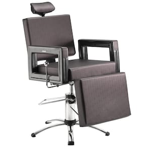 - Descanso de Pernas: Para maior conforto do cliente e ergonomia do profissional a cadeira Square Make possui descanso de pernas com acionamento por pistão pneumático, garantindo uma amplitude regulável de até 90°;