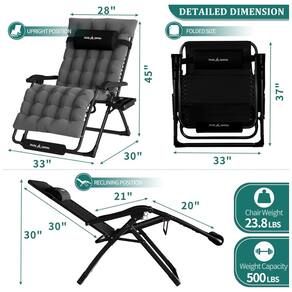 Marca: UDPATIO Cor: Cinza Escuro Dimensões do Produto: 84 cm (Profundidade) x 76 cm (Largura) x 114 cm (Altura) Tamanho: XXL Estilo do Encosto: Almofadado Características Especiais: Apoio lombar ajustável, altura ajustável, descanso para os braços, bloqueio do assento, almofada inclusa Instruções de Cuidados: Limpeza com pano úmido Conteúdo da Embalagem: 1 cadeira Uso Recomendado: Acampamento Peso Máximo Recomendado: 227 kg Padrão: Sólido Ambiente Recomendado: Jardim de Pátio Faixa Etária: Adulto Componentes Inclusos: Descanso para os pés, almofada, travesseiro, porta-copos Formato: Retangular Nome do Modelo: Cadeira XXL Zero Gravity com Almofada Estilo dos Braços: Ergonômico Superfície Recomendável: Pisos Sólidos Movimento da Base: Balouço (Rocking) Uso: Exterior Profundidade do Assento: 76 cm Material de Enchimento: Espuma Estilo do Almofadado: Borda Retangular Estilo das Pernas: Retas Posições Reclináveis: 2 Inclinação: Sim Dobrável: Sim Número de Porta-Copos: 1 Largura do Encosto: 84 cm Peso do Produto: 26,5 kg Marca: Não Informado