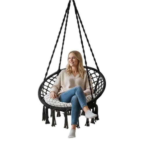 Com seu formato e cores atraentes, além de deixar os cantos da casa mais visíveis, contribui para nos revigorar para o dia a dia. Rede cadeira de balanço ótima para decoração em varandas, sítios, jardins ou qualquer ambiente.