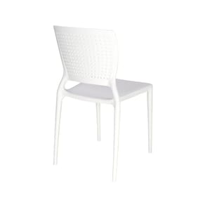 A Cadeira Safira Branca Tramontina é feita de polipropileno e fibra de vidro.