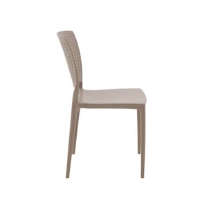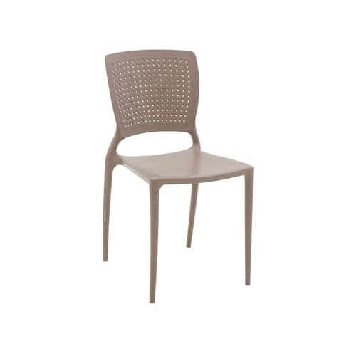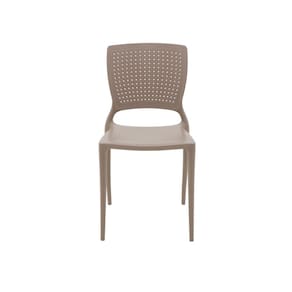 A Cadeira Safira Camurça Tramontina é feita de polipropileno e fibra de vidro.