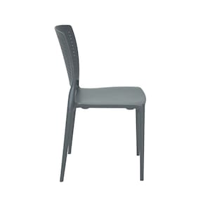 A Cadeira Safira Grafite Tramontina é feita de polipropileno e fibra de vidro.
