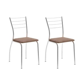 Cadeira Sala De Jantar 1700 Kit 2 Un Cromado/suede Conhaque - Carraro