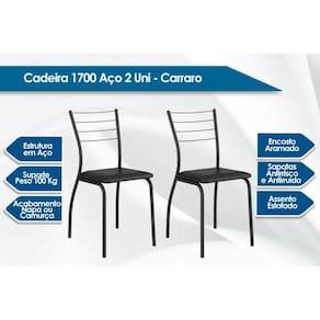 Cadeira Sala de Jantar 1700 Kit Aço 2 Uni Preto/Courano Preto - Carraro